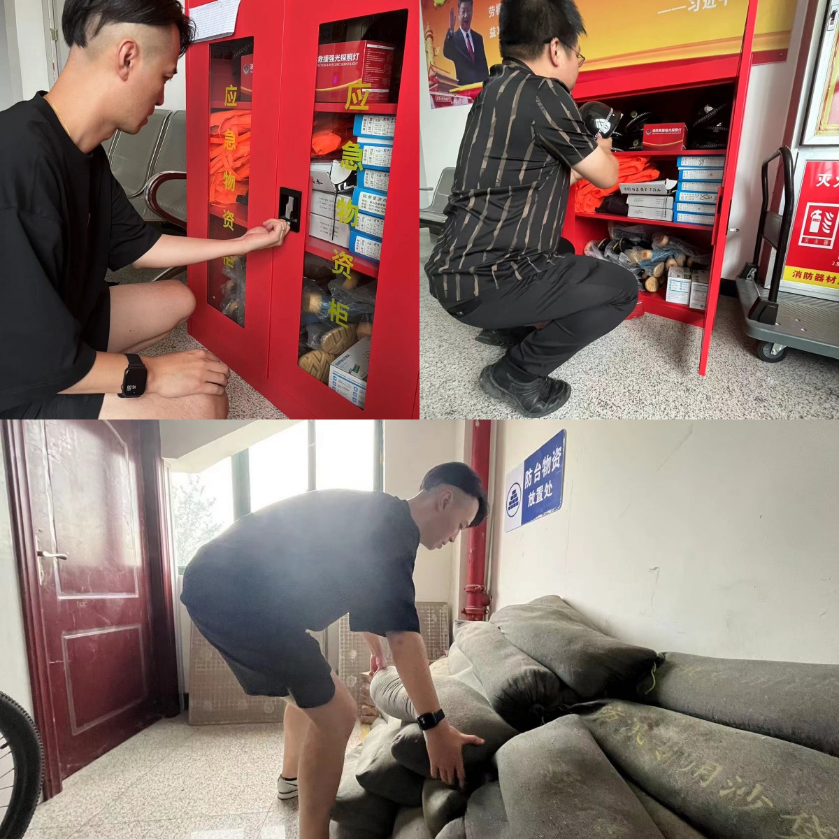 (提前對防汛物資箱、沙包等進行一一檢查)