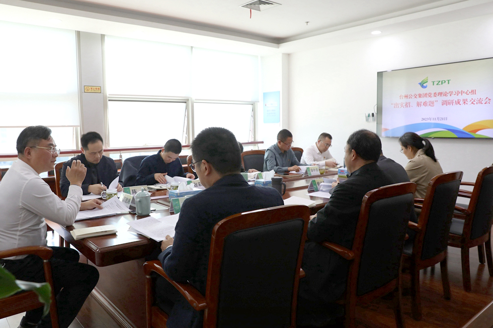 近日,臺州公交集團黨委舉行理論學習中心組集體學習暨調研成果交流會,進一步學習貫徹習近平總書記關于調查研究的重要論述精神,深入交流調研成果,剖析正反典型案例,研討轉化工作舉措,推動主題教育走深走實、見行見效。集團黨委書記、董事長郭健跳主持會議并講話,理論學習中心組成員逐一作交流發言。市委理論學習中心組學習巡聽旁聽工作組到會指導。