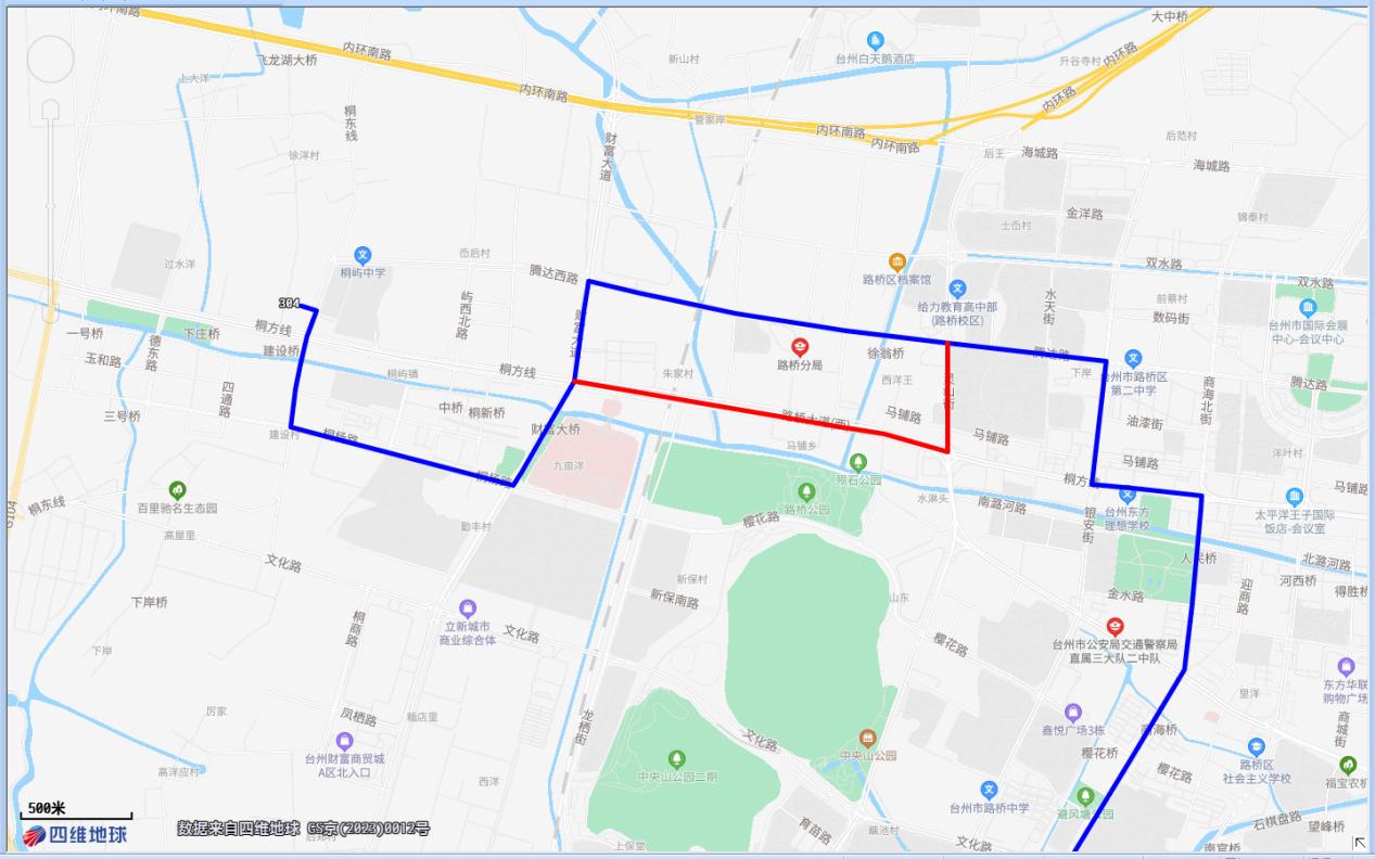 上圖紅色實線為304路臨時調整路段
