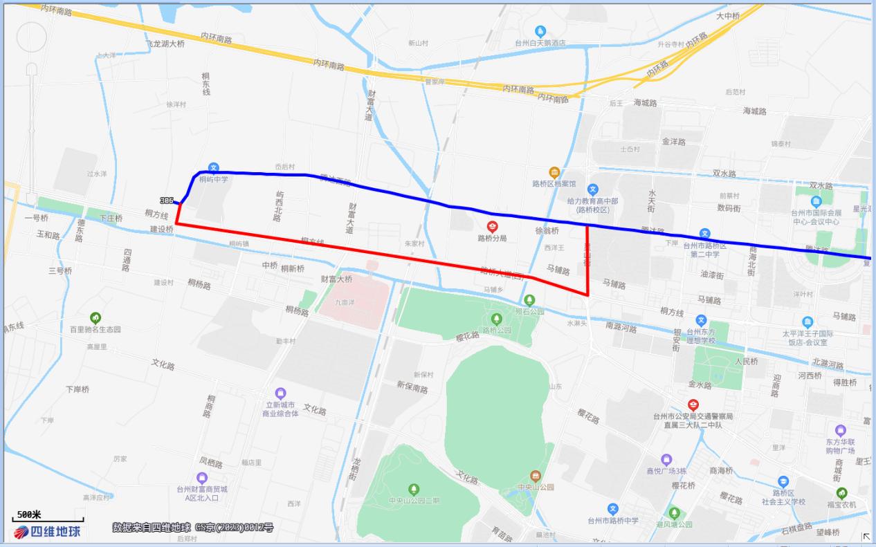 二、306路,公交三公司與水天一色間,臨時調整為經路橋大道、靈山街運行。臨時取消桐嶼中學、高橋章、路橋圖書館、路北街道等4對站點。同時,臨時增加恩澤醫院北、路橋電力大廈、園丁苑3對站點。