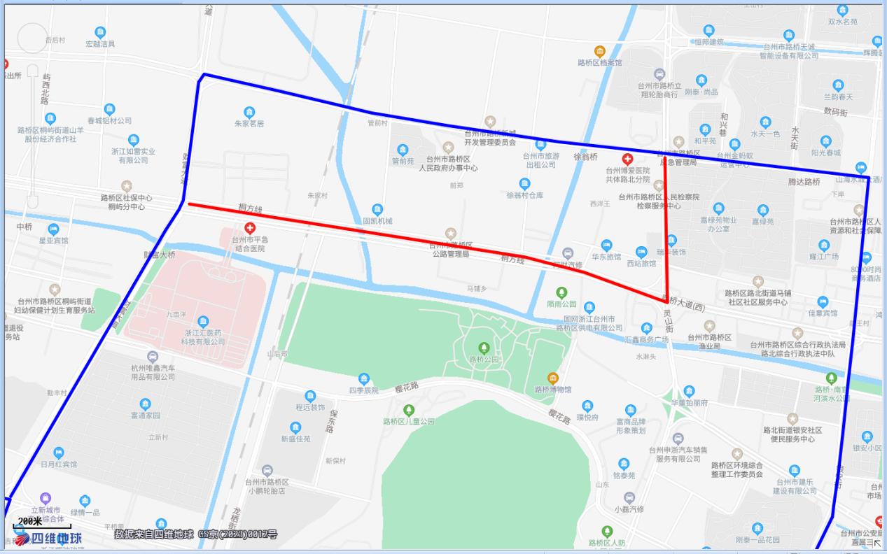 紅色實線為307路臨時調整路段