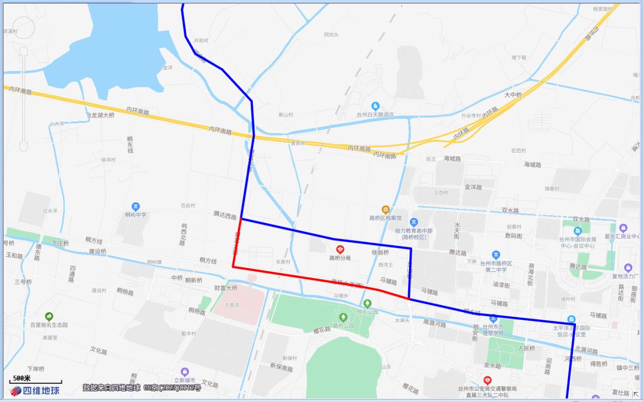 四、311路,湖濱路南與路橋電力大廈間,臨時調整為經財富大道、路橋大道運行。臨時取消桐嶼中學、公交三公司、桐嶼建設、桐嶼小學、恩澤醫院等5對站點。同時,臨時增加停靠財富大道騰達路口1對站點。