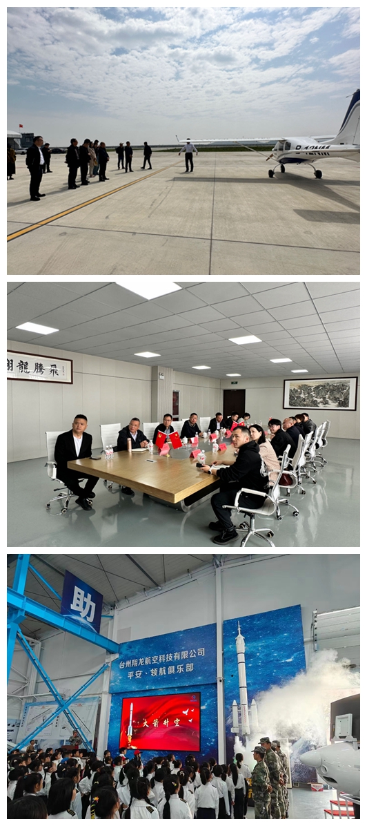 現場體驗活動結束后,與會人員觀摩了翔龍航空科技有限公司創辦的青少年國防教育暨航空研學基地,并專題就合作共建“低空文旅交通圈”項目的初步可行性展開探討。據介紹,該項目設想在臺州各縣市區建設航空營地,通過航空營地與房車營地、重要景區的旅游集散地高效鏈接,實現市內外旅客在臺州各大著名景區之間實現交通“快進”,以低空便捷交通串聯各縣市區陸地、山區與海洋旅游資源,促使形成多方共贏的文旅服務創新聯盟。同時,項目也將衍生相應產業鏈條,包括研學教育、航空運動、無人機物流運輸、醫療救助、農林作業等一系列低空經濟項目。在聽完項目初步可行性匯報后,與會人員重點就項目建設路徑、合作模式、政策支持、線路策劃等問題展開了深入討論。
