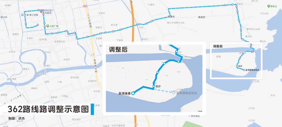 為優(yōu)化公交線網(wǎng),方便市民出行,362路計劃于2024年8月1日起,由“金清客運中心——金清港客運碼頭”調(diào)整為“金清客運中心——金清漁港”。其他不變。