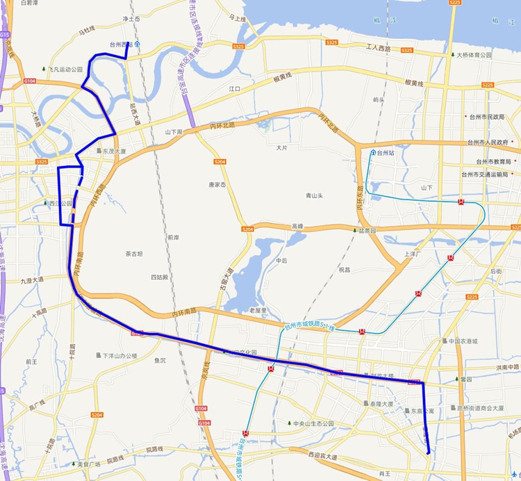 原線路走向:前章路-沿江路-椒江一橋-臺州大道-黃海公路-站西大道-站前北路