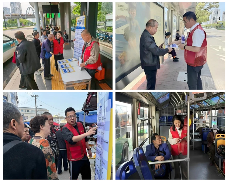 為提升信息觸達率,各車隊將線路調整信息及出行建議宣傳單頁統一放置在公交車內車載電視下方、扶手欄桿等顯眼位置,方便乘客隨時取閱。同時,黨員志愿者主動駐守站點,針對老年群體、通勤市民等不同需求,一對一講解線路走向變化,并解答關于換乘方案、班次間隔等疑問。一位常乘坐906路的市民表示:“調整后雖然部分站點取消,但新增了972的路線,工作人員還幫忙規劃了替代出行方案,服務很貼心。”