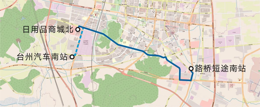 從“路橋短途南站-臺州汽車南站”變更為“路橋短途南站-公交商城北站”。