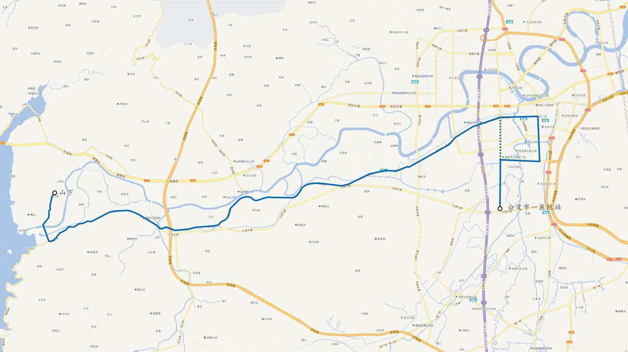 由“公交山下站—城區(qū)”變更為“公交山下站—公交市一醫(yī)院站”。