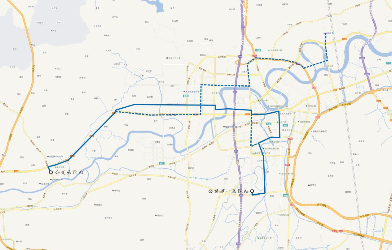 由“公交頭陀站—城區(qū)”“公交頭陀站—火車(chē)西站”變更為“公交頭陀站—公交市一醫(yī)院站”。