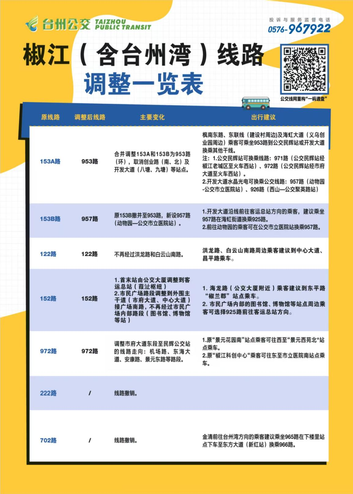 1.調(diào)整122路、152路、153A路、153B路、972路、222路共6條公交線路。
