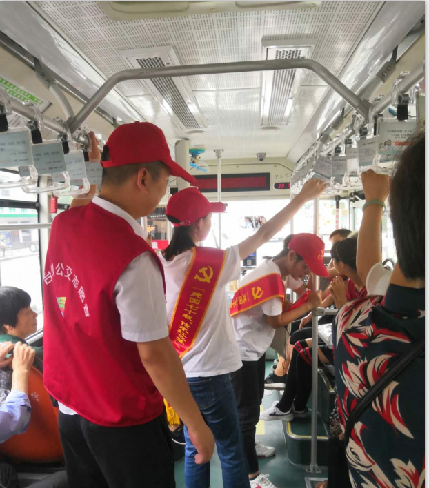 為紀念中國共產黨成立98周年,進一步弘揚黨的光榮傳統和優良作風,讓黨員把身份亮出來、先鋒模范作用樹起來,從而更好地服務群眾、服務社會。7月8日至10日,臺州公交集團積極響應市委開展建黨98周年“紅七月”系列活動的號召,結合“亮黨員身份 樹公交形象”主題,聯合臺州學院開展了“我是黨員我帶頭”志愿服務活動。集團黨員志愿者帶頭與臺州學院醫藥化工與材料工程學院師生共同組成青春宣講團,直面廣大乘客進行紅色主題宣講,贊頌輝煌成就、傳承紅色基因,用實際行動向建黨98周年獻禮。