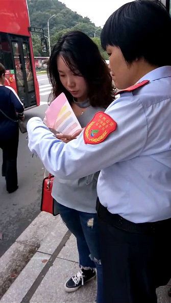 一天中最需要耐心的工作是跟車服務。根據安保視頻抽查中發現的違規行為,安保第一中隊隊員搭上重點駕駛員車輛,進行跟車服務,檢查車上安全設施、幫忙打掃車內衛生。如有行動不便的老人上車,馬上將老人攙扶至愛心座椅,待坐穩后再告知駕駛員起步發車。她們還記錄駕駛員的開車習慣、安全駕駛情況,提醒駕駛員存在的違規行為,解釋公司規章制度,傳達公司文件精神,引導駕駛員樹立良好形象,提升服務水平。