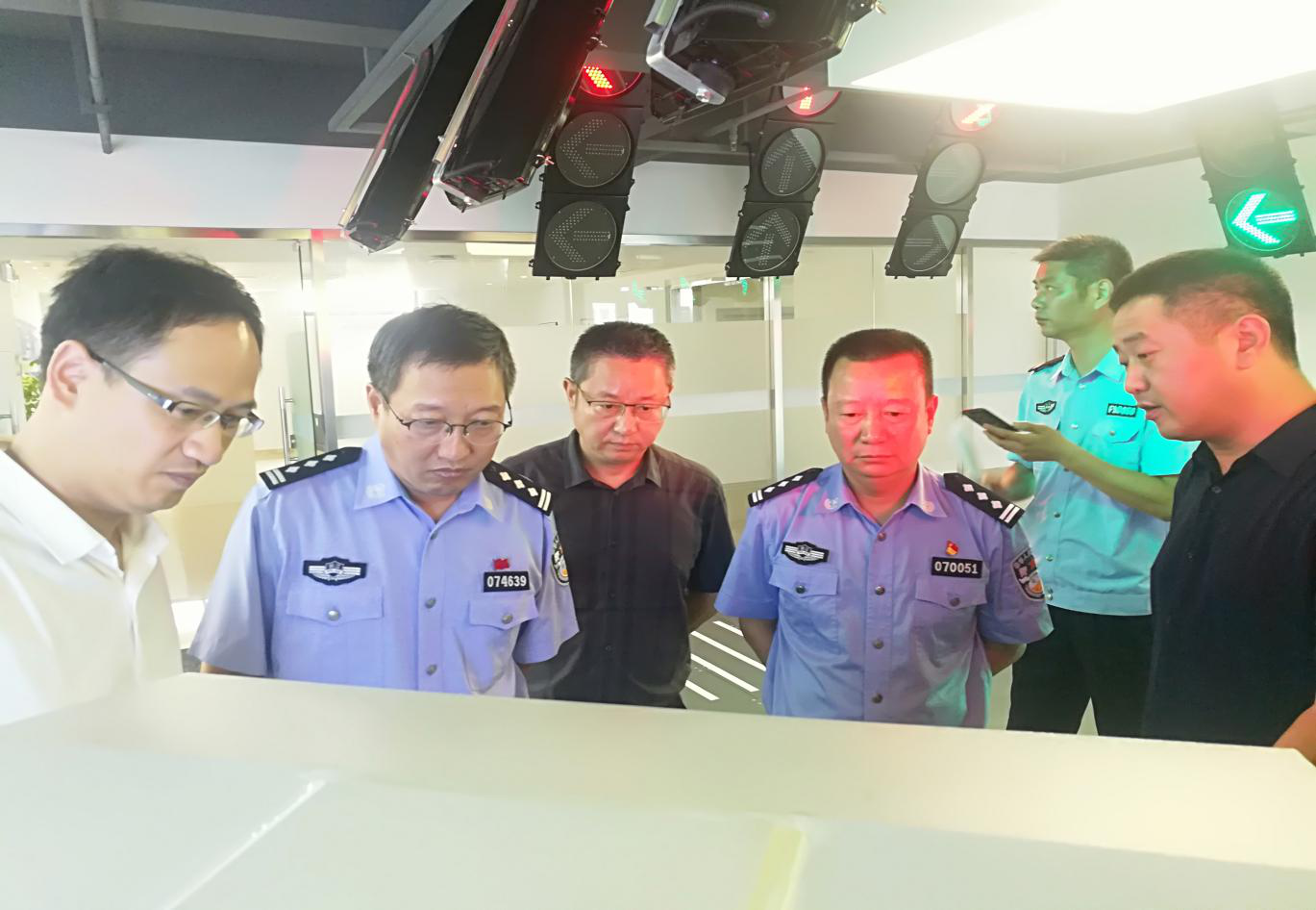當(dāng)天上午,江兵一行參觀考察了公司與臺州市交警局直屬四大隊合作開展的集聚區(qū)“道路交通信號綜合管控平臺”試點項目,并聽取了通號暢行公司關(guān)于信號綜合管控平臺的工作報告。