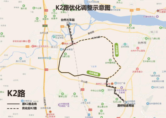 為進(jìn)一步方便路橋區(qū)和黃巖區(qū)市民往返于臺(tái)州市婦女兒童醫(yī)院(中村)的快速公交出行,經(jīng)相關(guān)主管部門(mén)同意許可后,對(duì)原K2路進(jìn)行優(yōu)化調(diào)整。
